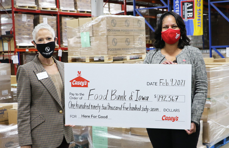 “At Food Bank of Iowa, we are grateful for the support that Casey’s has provided,” said Michelle Book, president and CEO at Food Bank of Iowa. “In this time of need, we want every household to have food on their table and that is why Feeding America’s partnership with Casey’s is critical to help us reach more Iowans.”