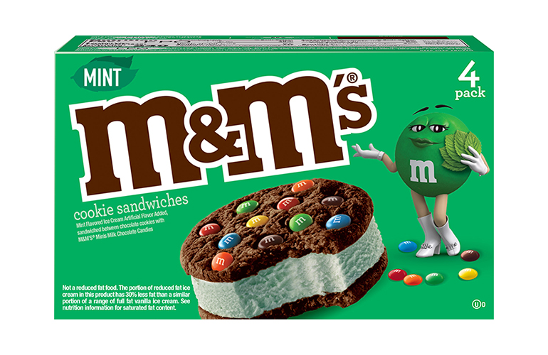 Mars Wrigley announced two new flavors to the M&M’S Ice Cream Cookie Sandwich lineup — mint and classic varieties — bringing the colors and flavors that M&M’S fans know and love to the freezer aisle. M&M’S Mint Ice Cream Cookie Sandwiches feature refreshing mint-flavor ice cream between two chocolate cookies with Milk Chocolate M&M’S Minis. And M&M’S Classic Ice Cream Cookie Sandwiches feature vanilla ice cream sandwiched between two chocolate cookies with Milk Chocolate M&M’S Minis baked in. The two new flavors are available in new, redesigned packs of four (16 ounces).