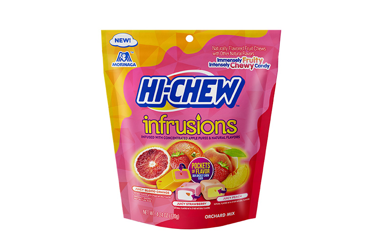 Hi-Chew has launched its all new Infrusions Orchard Mix, featuring three fruit flavors: Juicy Blood Orange, Juicy Peach and Juicy Strawberry. Each “chewlet” provides a burst of juicy flavor, while still maintaining Hi-Chew’s signature texture. More juiciness is added with infused concentrated apple puree and pieces of pectin jelly to mimic true-to-life, fruity flavors. Hi-Chew — which is also gluten free — contains no colors from synthetic sources. The Hi-Chew Infrusions Orchard Mix is offered in a four-ounce stand-up pouch for a suggested retail price of $4.29 and is rolling out now at select retailers nationwide.