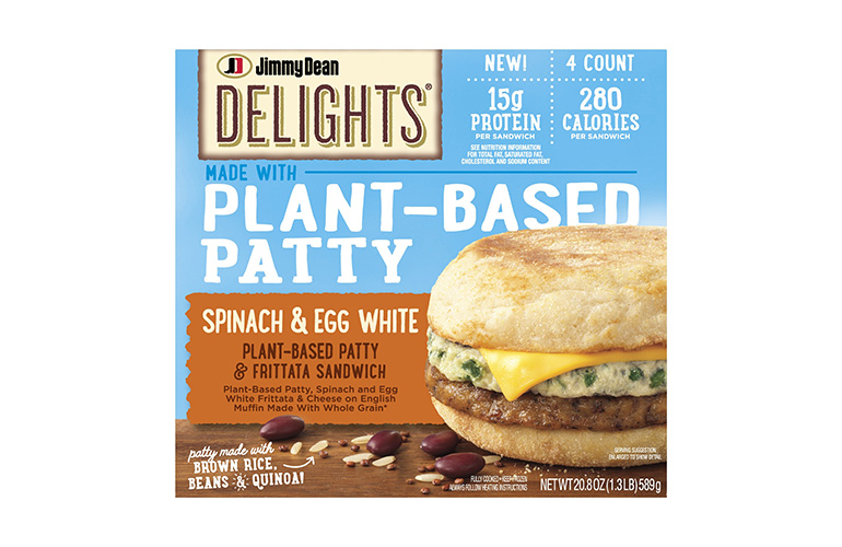 Jimmy Dean Delights Plant-Based Patty & Frittata Sandwiches feature a vegetable and grain patty made of soy protein, black beans, brown rice, quinoa and egg white, topped with a spinach and egg white frittata and American cheese, all inside a whole wheat English muffin, providing 15 grams of protein and 280 calories per serving. The sandwiches will be available nationwide in Spring 2021 as a four-count pack. This is the most recent example of Tyson Foods’ pursuit to produce the most loved alternative protein products in the world and expand the accessibility and affordability of plant-based protein options to consumers.