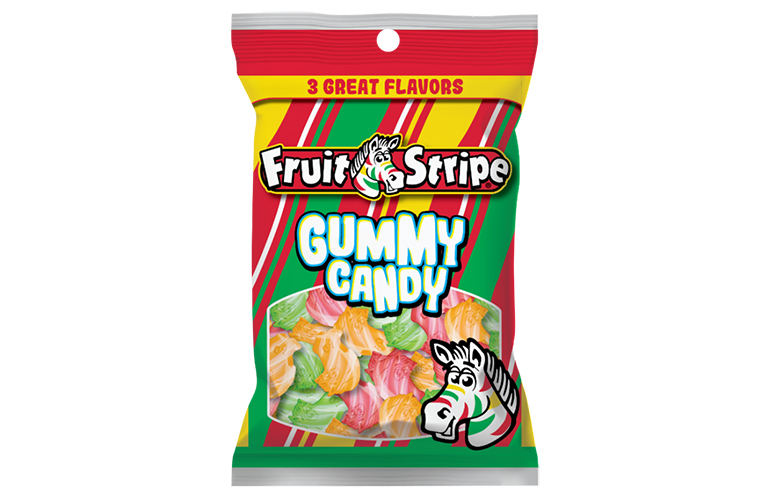 Building off the growth and heritage of Fruit Stripe Gum, Fruit Stripe is launching its first-ever Gummy candy with three flavors swirled into a striped gummy candy version of the Fruit Stripe Mascot, Yipes the Zebra. Flavors include Tangerine, Lemon and Cherry. The candy is available in March 2022 in 3.25-ounce peg bags. The suggested retail price is 85 cents per peg bag.